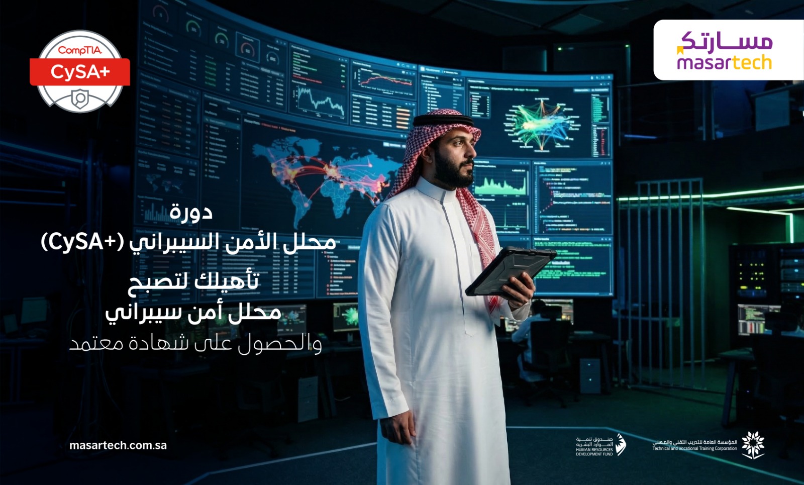 🎯 سجّل الآن في دورة CySA+ من معهد مسار تك، وابدأ مشوارك المهني في عالم الدفاع السيبراني باحترافية عالية. نؤهلك لتكون في الخط الأمامي لحماية المؤسسات.